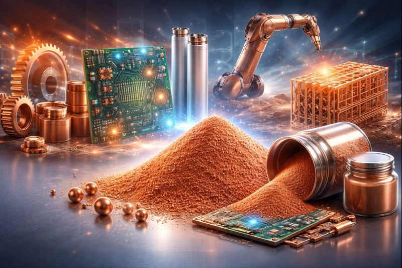 不同制备工艺和粒径分布的铜粉,在性能上存在显著差异,从而决定了其在不同工业领域中的适用性。本文将围绕铜粉的核心物理化学特性,系统分析其在粉末冶金、电子与导电材料、摩擦材料、新能源、化工与催化、3D 打印及新兴功能材料等主要应用场景中的作用与发展趋势。